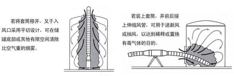 3、適用于油槽、加工槽、油罐車(chē)、人孔及其他有限空間通風(fēng)換氣。